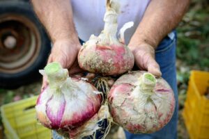 Qui, l’Azienda Agricola La Rossa porta avanti con orgoglio la coltivazione della celebre Cipolla Rossa di Breme, affettuosamente soprannominata “la dolcissima” per quella sua incredibile capacità di farsi amare anche da chi solitamente rifugge il sapore pungente dei bulbi tradizionali.