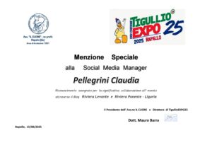 Negli ultimi anni, Claudia Pellegrini ha scelto di approfondire ulteriormente il mondo della comunicazione online, lavorando come Social Media Manager e Creator Digitale. Si occupa di strategie di comunicazione e creazione di contenuti per Facebook, Instagram, siti web e blog, unendo così le sue competenze tecniche alla creatività. Per passione, gestisce anche la pagina “Riviera Levante Riviera Ponente Liguria”, dedicata alla promozione del territorio ligure, tra curiosità, cultura e attualità.
